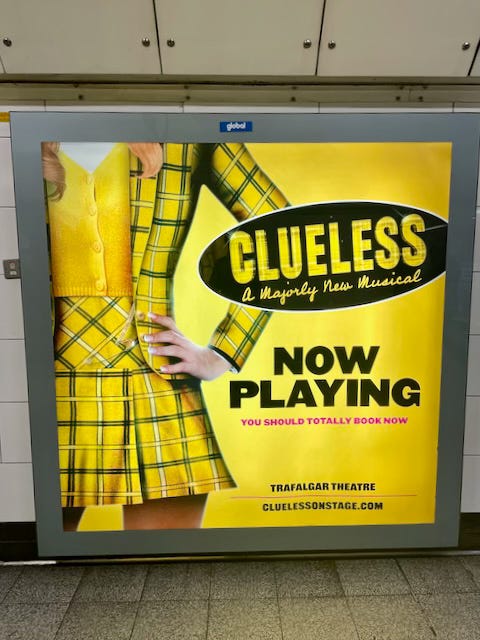 At a slightly less blockbuster but still ‘IP’ scale, a new musical adaptation of Amy Heckerling’s Clueless (for which she has written the book) premiered this month in London. Here’s the poster, looking fine on London’s underground yesterday.